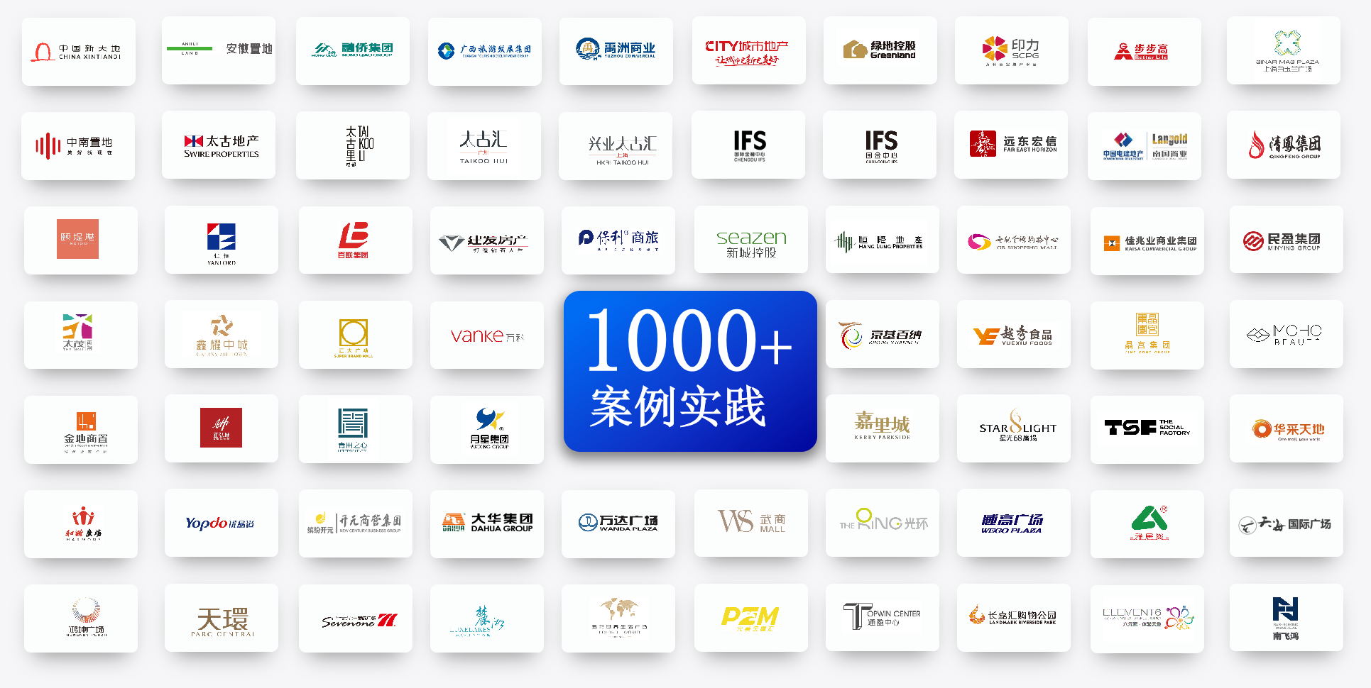 近30年來(lái),團(tuán)隊(duì)服務(wù)行業(yè)客戶(hù)已突破1000家,在商業(yè)地產(chǎn)行業(yè)Top50企業(yè)中,海鼎科技客戶(hù)覆蓋率達(dá)60%,包括:恒隆地產(chǎn)、太古地產(chǎn)、九龍倉(cāng)集團(tuán)、印力集團(tuán)等知名企業(yè),擁有前沿、可靠的商業(yè)地產(chǎn)數(shù)字化建設(shè)經(jīng)驗(yàn)。